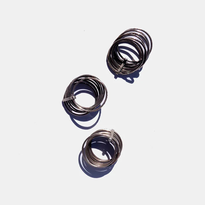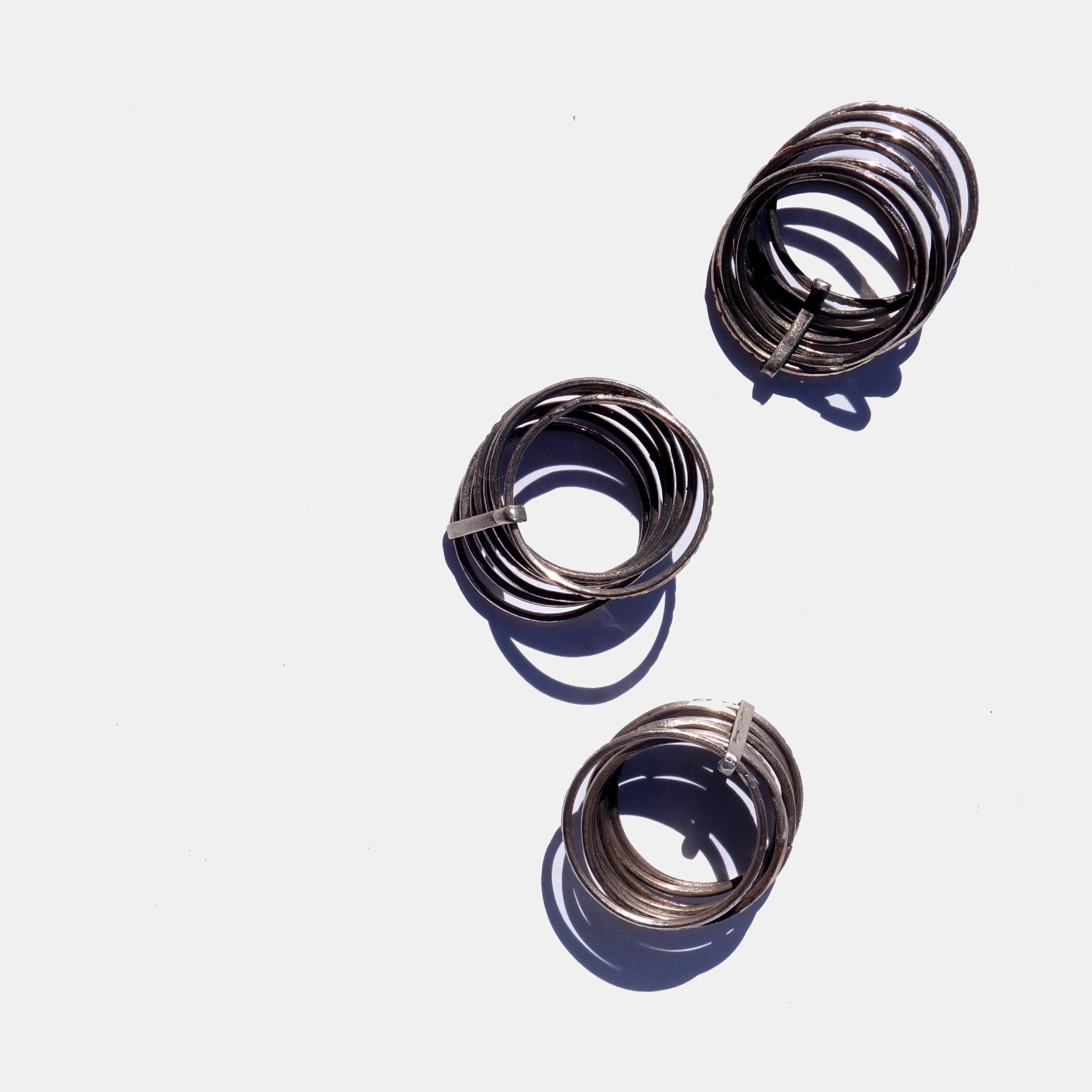 These unisex silver rings are composed of seven thin chiseled rings. Each one has a different design and represents a day of the week (or whatever you decide them to represent). They are handmade in Niger by nomad artisans.